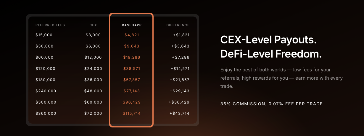 Based Affiliate is one of the more rewarding affiliate program out there. Our affiliate program has payouts that rivals some of the biggest CEX in the world.